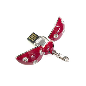Флэш-диск QUMO Charm Series Ladybird — гордость Charm Series. Это изящный USB-накопитель в форме яркой божьей коровки. Под её крылышками скрывается коннектор USB и большой кристалл. Будьте осторожны, наша божья коровка любит нежное обращение — не пытайтесь открывать крылышки дальше их предельного положения. Корпус выполнен из метала, украшен стразами. С помощью шнурка и цепочки можно прикрепить к сумке, телефону, ключам.
