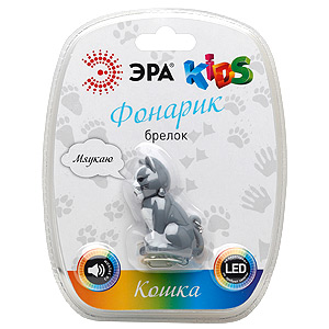 BD1-K Фонарь ЭРА Детский брелок "Кошка", бат в компл, бл (10/100/1400)