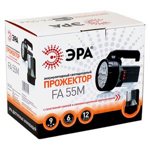 FA55M Фонарь ЭРА Акку 6V2.5Ah, 9xLED, галоген10W, люм7W,ЗУ 220V, карт (12/288)