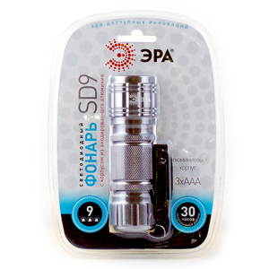 SD9 Фонарь ЭРА 9xLED, алюм, 3хААА, бл (24/144/1728)