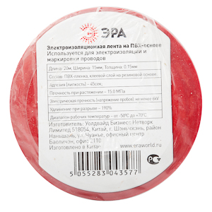 43584/43577 ЭРА ПВХ-изолента 19мм*20м красная (10/200/6000)