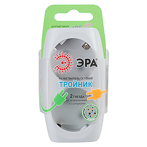 SP-2e-W ЭРА Тройник 2гн, с заземл, со шторками (белый) (10/60/1440)
