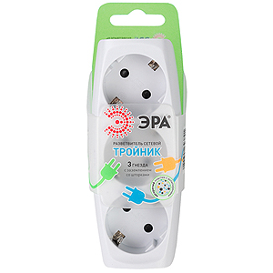 SP-3e-W ЭРА Тройник 3гн, c заземл, со шторками (белый) (10/60/960)