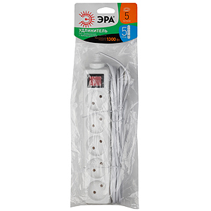 UX-5s-5m Удлин-ль ЭРА без заземл, с выкл, 1300Вт, 5гн, 5м (20/600)